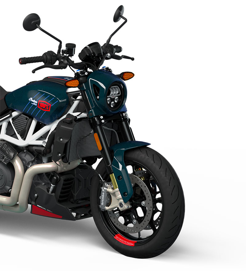| Roues | Noires moulées avec liseré Indian Motorcycle rouge (17" x 3,5" - 17" x 5,5") |